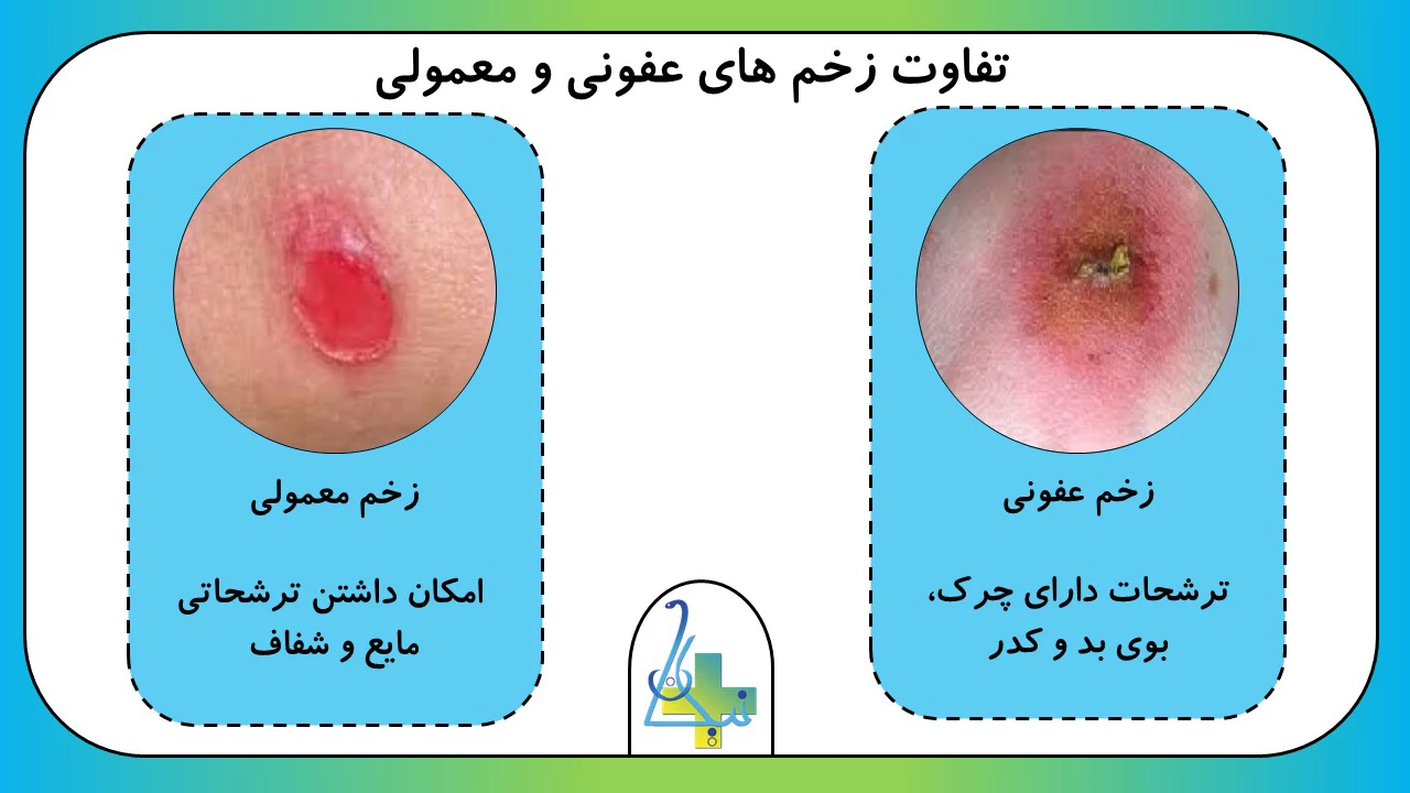 - در صورت بروز هرگونه علامت در زخم مثل قرمزی، تورم و خروج چرک و یا حتی تب باید احتمال عفونت بدهید. پس سریعا به پزشکتان اطلاع دهید.